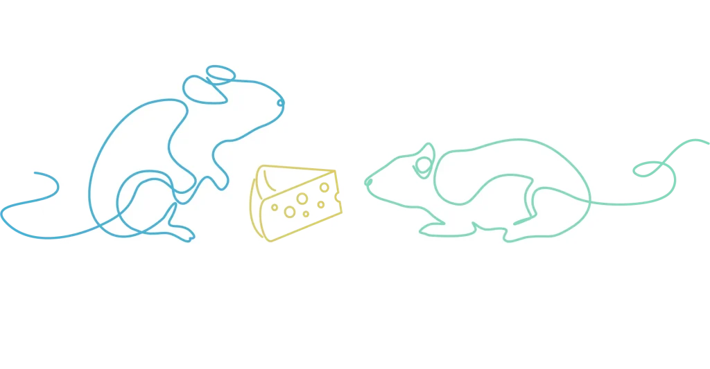 「チーズはどこへ消えた」に出てくる、二匹のネズミ。二匹の名前はスニフ(Sniff)とスカリー(Scurry)。