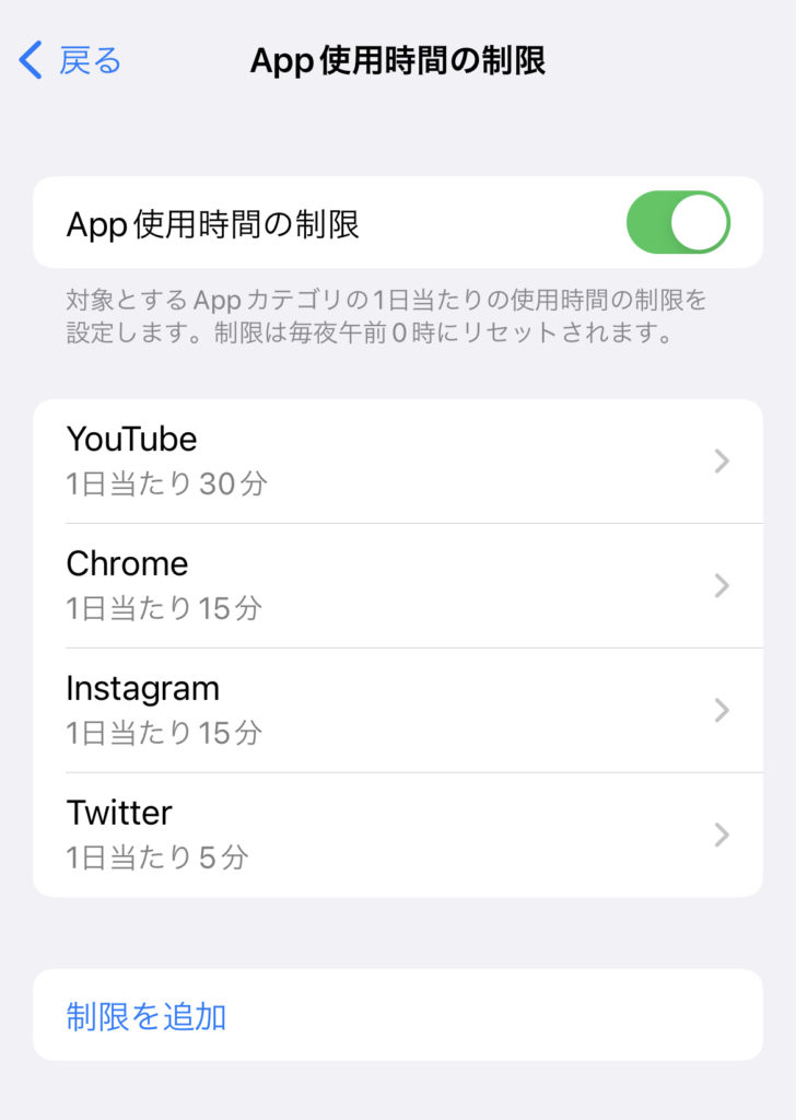 各アプリの使用時間を決めています