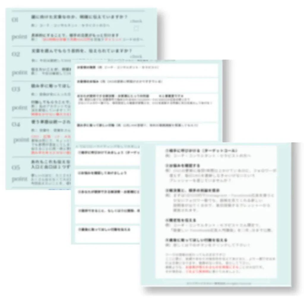 LP制作で1番時間がかかるのはライティングです。ライティングをいかに効率良く進め、要点を分かりやすく伝えるかが重要です。弊社ではLP制作、クライアントの広告運用経験を活かしたライティングシートをご用意しています。
